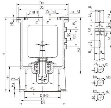 | 減速機輸出軸徑d0 | 減速機類別代號 | D1 | D2 | D3 | n1-M | f1 |