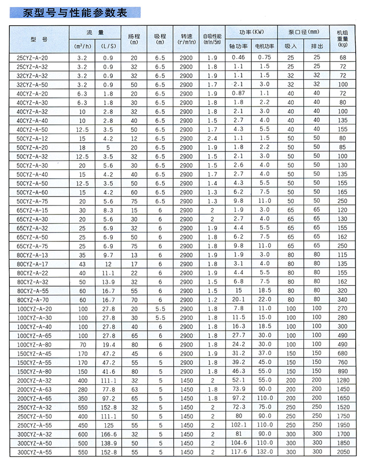 八、CYZ-A型自吸式自吸泵參數(shù)選型: