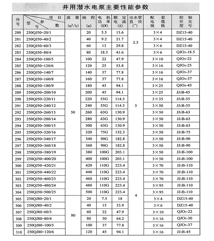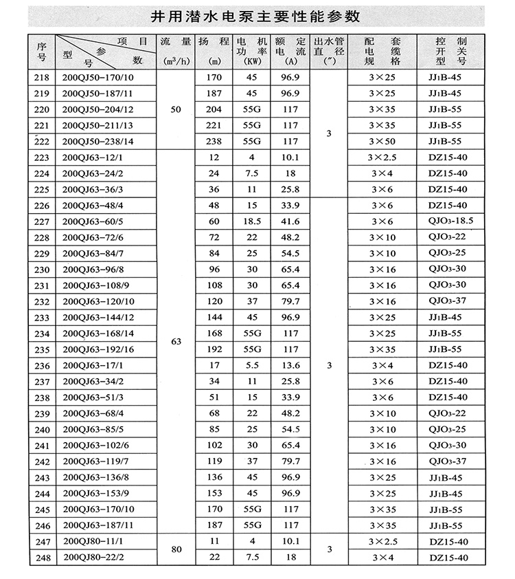 ZAQJ長軸深井泵、深井長軸泵性能參數