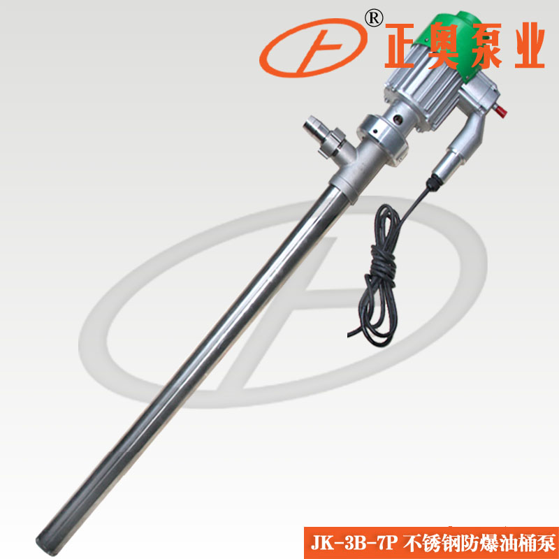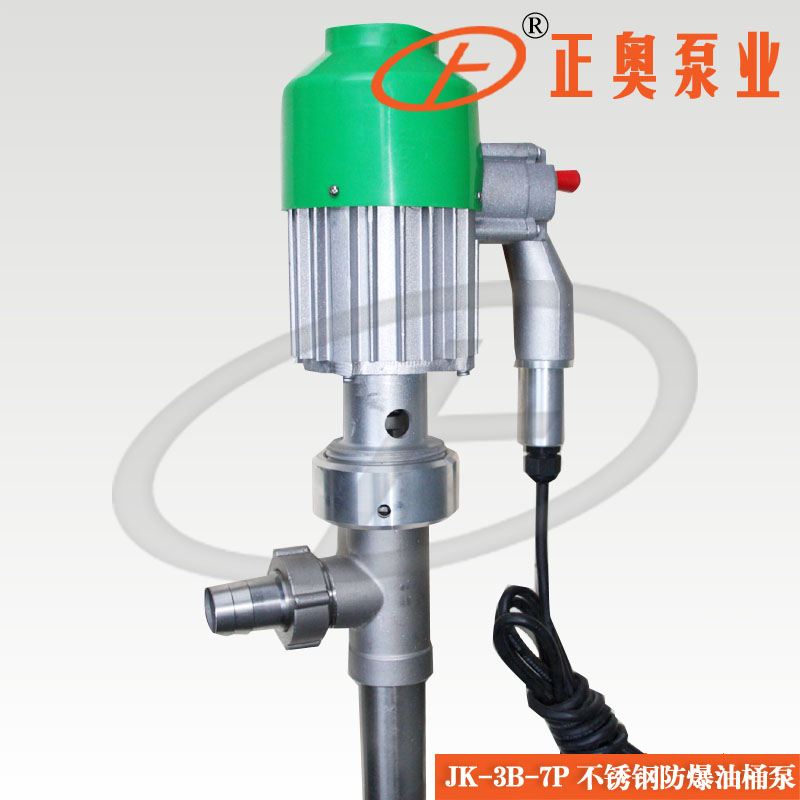 油桶泵JK-3B,SB系列電動抽液泵是上海正奧水泵有限公司引進(jìn)西德優(yōu)質(zhì)樣機(jī)開發(fā)研制而成,各項(xiàng)技術(shù)指標(biāo)均能達(dá)到樣機(jī)水平,并在樣機(jī)基礎(chǔ)上開發(fā)了不同的使用場合不同抽吸液體的系列派生產(chǎn)品,正奧該系列泵為輕便型管式軸流泵,具有效率高,使用、維修方便等特點(diǎn)。如在易燃易爆場合使用,可選用我公司生產(chǎn)的防爆型電動抽液泵。(JK-3B、JK-3B-7、SB-3型、SB-4型SB-7型、SB-8型)使用防爆型電動抽液泵時應(yīng)按GB38361-2《爆炸環(huán)境用防爆電氣設(shè)備》有關(guān)規(guī)定并正確使用防爆插頭插座。