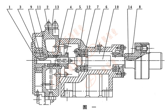 SZB型泵結構如圖一所示、工作室由泵體(2)、泵蓋(1)構成,上有進排氣口(詳見圖三),下有放水螺塞(15)(見圖三),泵蓋上有指示旋轉方向的箭頭,泵體有填料函和填料壓蓋(5),內裝填料(4)密封,泵體側面的螺絲孔(16)(見圖三)為補充水環消耗用水。