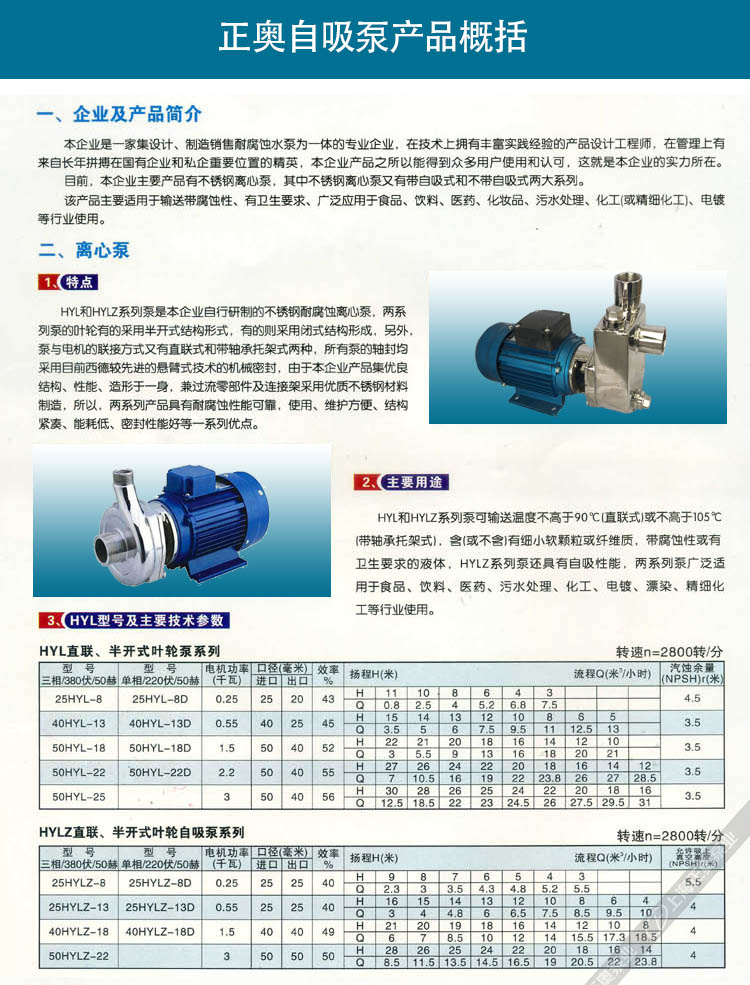 HYL型正奧不銹鋼耐腐蝕離心泵,采用優(yōu)質(zhì)不銹鋼為主料,以西德技術(shù)的機(jī)械密封為軸封,對輸送不同的介質(zhì),我們采用半開式和閉式結(jié)構(gòu)兩種不同的葉輪,及泵與電機(jī)的聯(lián)接方式有直聯(lián)式和帶軸承托架式兩種。此泵擁有結(jié)構(gòu)優(yōu)良、耐腐蝕性可靠,密封性能好,使用維修方便,能耗低,輸送溫度不高于90℃(直聯(lián)式),或不高于105℃(帶軸承托架式),含(不含)有細(xì)小軟顆;蚶w維質(zhì),帶腐蝕性或有衛(wèi)生要求的液體的理想選擇。