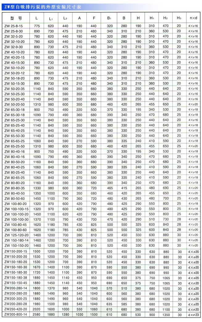 ZW型自吸式無堵塞排污泵既可象一般清水自吸泵那樣不需安裝底閥,不需灌引水,又可抽吸含有大顆粒固體直徑為出口口徑的60%和纖維長度為葉輪直徑1.5倍的污物、沉淀物、廢礦雜質、糞便處理及一切工程污水物和膠質液體,完全減輕人力的勞動強度,而且安裝使用方便,極少維修,性能達到國際先進水平,具有廣闊的應用市場和發展前景