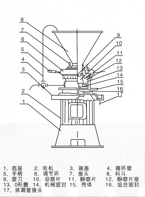 本產品配立式電動機,機體與電機連體同軸心結構,故又稱連體式膠體磨。