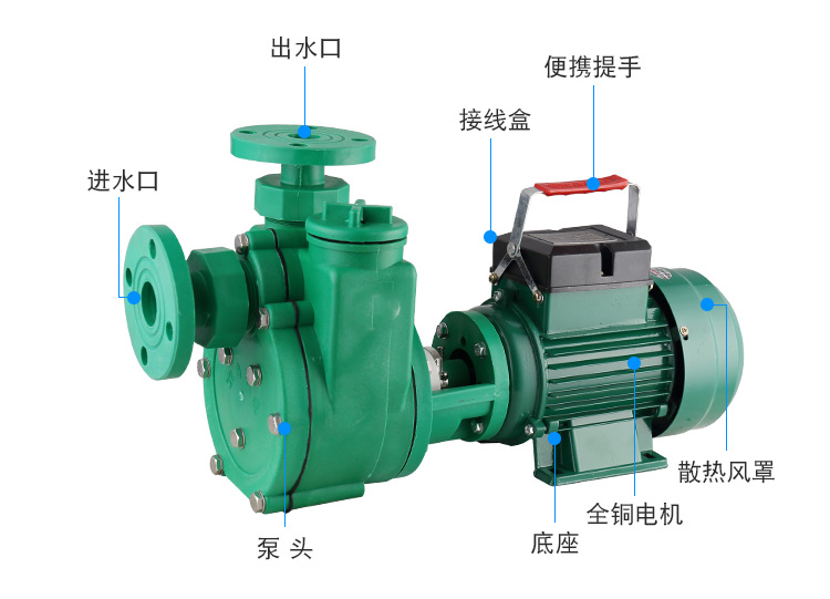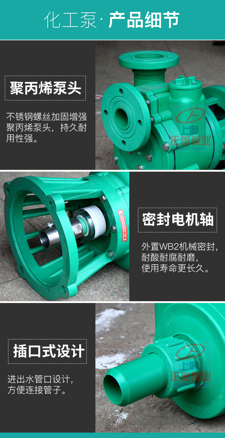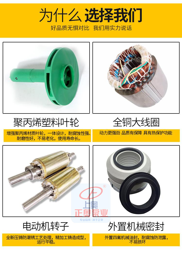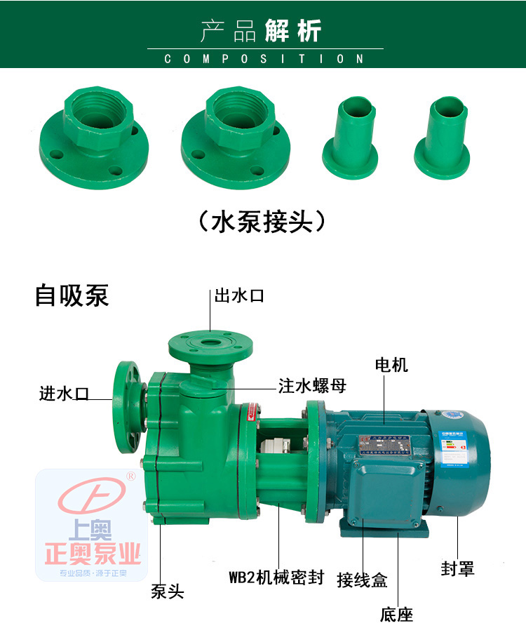 上奧牌FPZ自吸泵采用增強聚丙烯(CFR-PP)一次注塑成型泵腔內設有吸液室、儲液室、回液止回閥、氣液分離室、回流孔。只需在開機前灌引液,以后不必重復灌注引液,在吸送介質時,液體可時斷時續,斷液15分鐘內來液可繼續吸送,機械密封不需另加冷卻水冷卻,操作簡便,是取代液下泵的產品。CFR-PP材質耐一般酸堿鹽類,工作溫度-14℃~80℃。