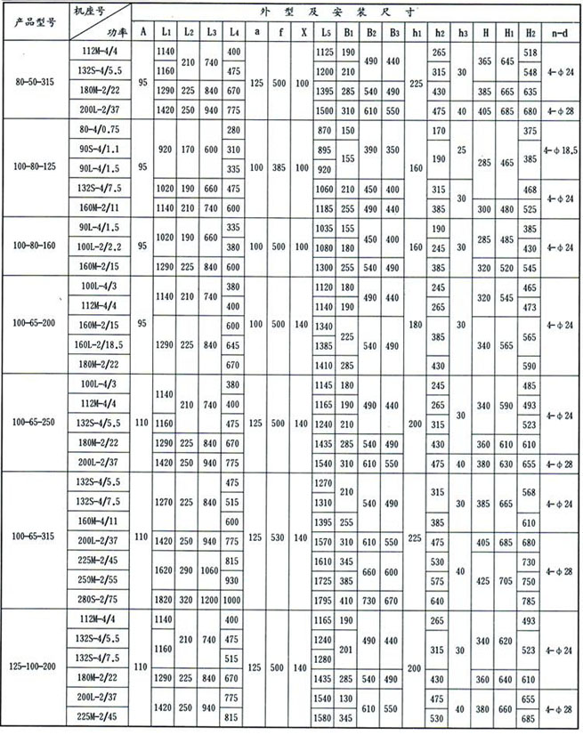1、泵的安裝是否合理,對泵的正常運(yùn)行和使用壽命有很重要的影響,所以安裝前必須仔細(xì)校正,不得草率,泵的外形及安裝尺寸,詳見困5和表4。