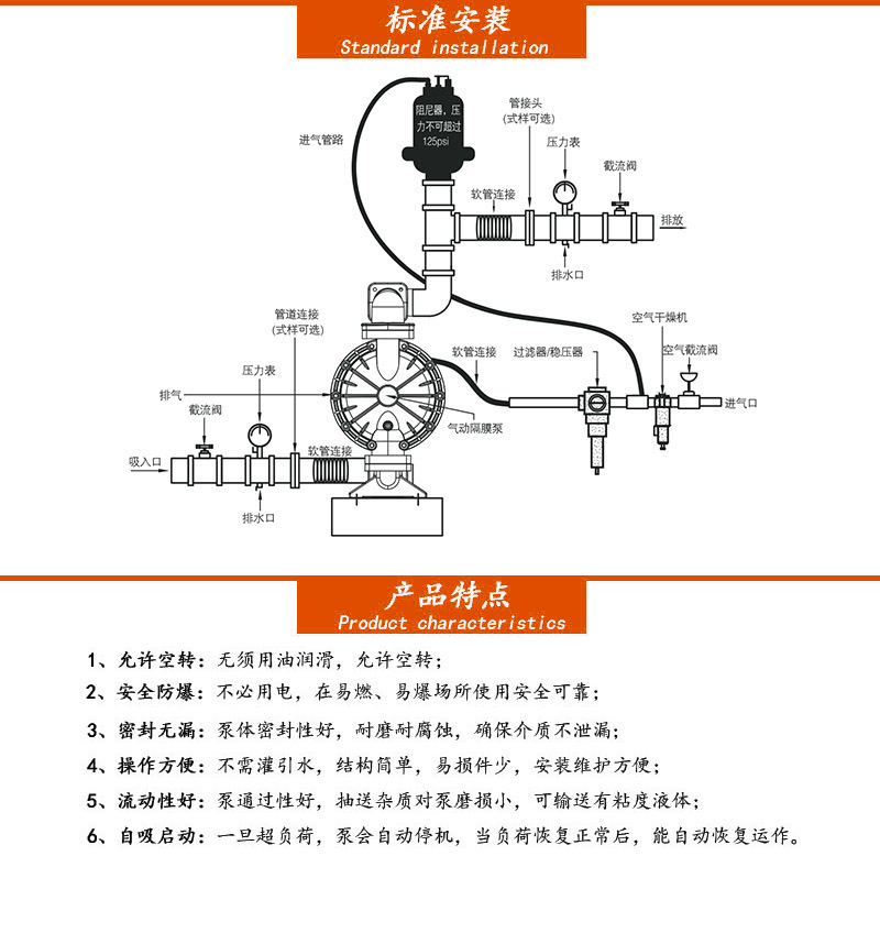 產品操作,耐腐蝕性,經久耐用,具自吸性,空轉無損,不需要加油,多種材料,用途廣泛,裝置簡單,免卻維修。