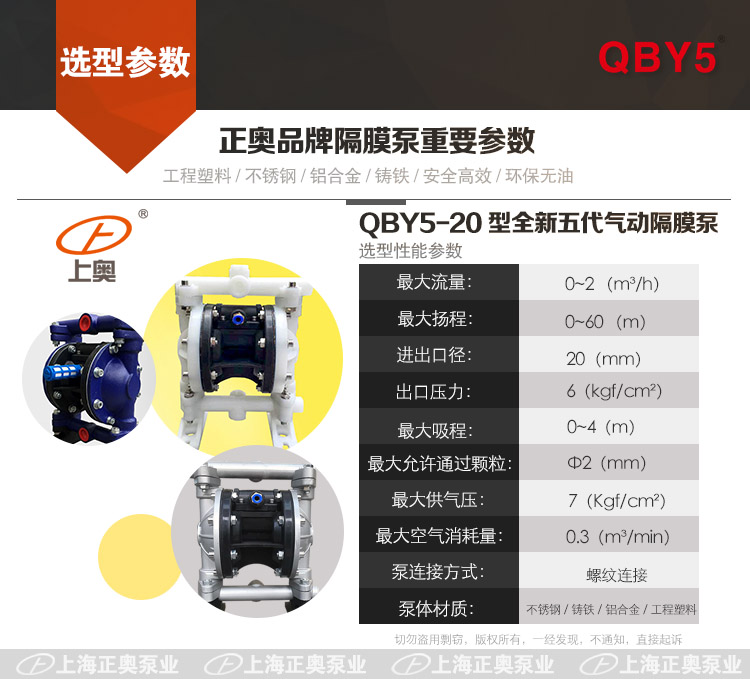 如用戶有特殊要求,聯系電話021-66525777,以方便用戶選型,正確使用上海正奧品牌隔膜泵