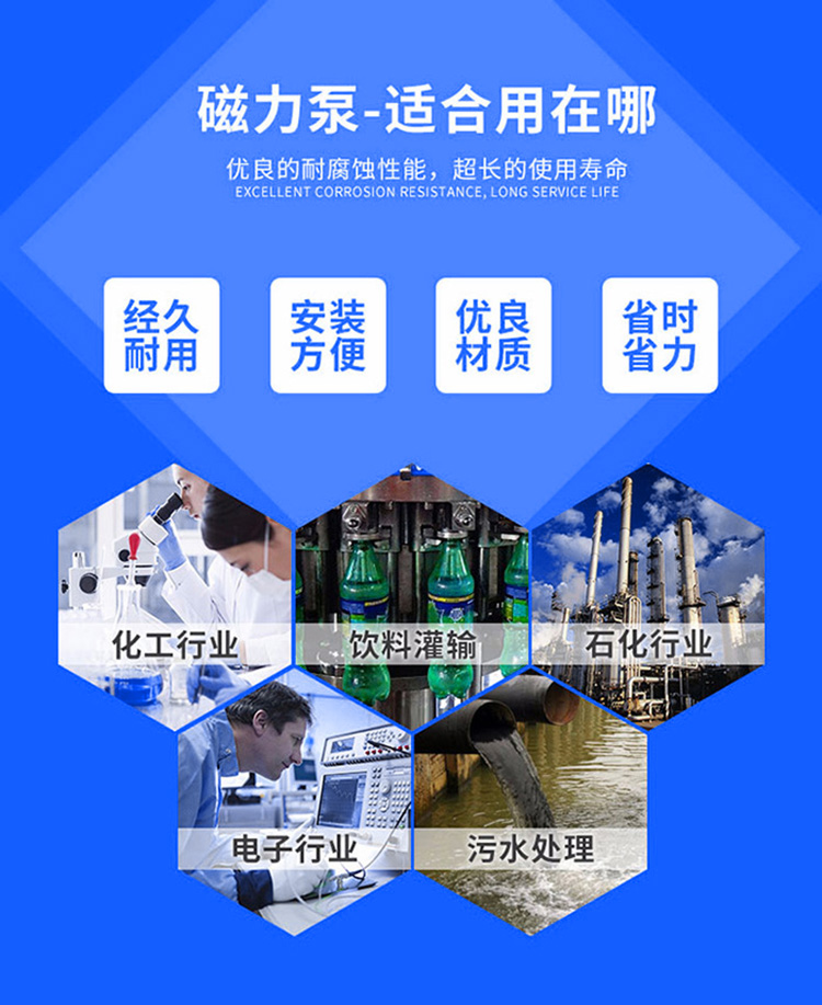 耐高溫磁力驅動泵用在石油精制、石油化工和化學工業及其它地方輸送特殊的石油、印染原料及其高溫介質(使用溫度t<300℃)。