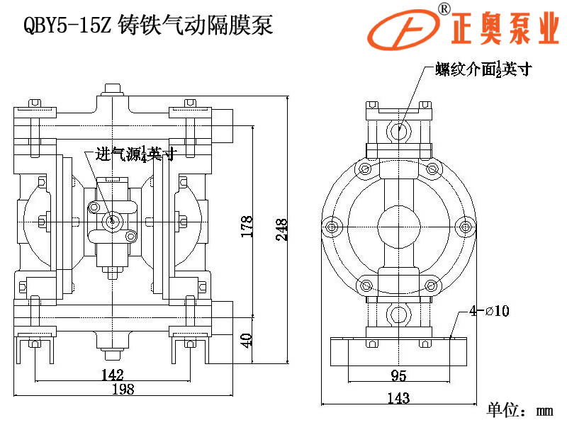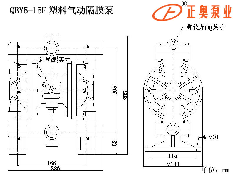 正奧公司目前已形成系列化生產,共有八種規(guī)格直徑:φ10mm(3/8')φ15mm(1/2')、φ25mm(1')、φ40mm(11/2')、φ50mm(2')、φ65mm(21/2')、φ80mm(3')、φ100mm(4')。五種材質:鋁合金、鑄鐵、不銹鋼、工程塑料、襯里(襯膠隔膜泵,襯氟隔膜泵)。隔膜泵根據(jù)不同液體介質分別采用丁晴橡膠、氯丁橡膠、氟橡膠、聚四氟乙烯隔膜。以滿足不同用戶的需要。