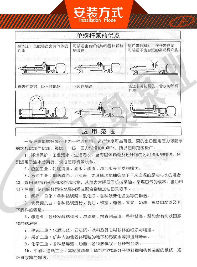 G型上奧牌螺桿泵主要致力于輸送有粘度且流動性差的介質,如: