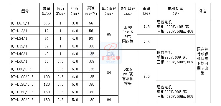 三、DJ-L型隔膜式計量泵技術(shù)參數(shù):