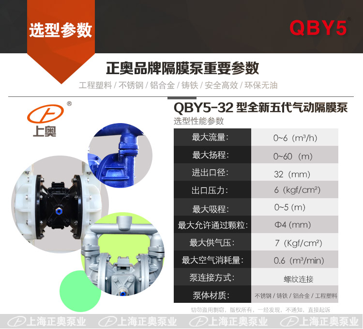 QBY5型氣動(dòng)隔膜泵是我公司開發(fā)的第五代氣動(dòng)隔膜泵歡迎選擇上奧牌氣動(dòng)隔膜泵。具有使用壽命長、不停機(jī)、無需加油的優(yōu)點(diǎn),即能抽送流動(dòng)的液體,又能輸送一些不易流動(dòng)的介質(zhì),具有自吸泵、潛水泵、屏蔽泵、泥漿泵和雜質(zhì)泵等輸送機(jī)械的許多優(yōu)點(diǎn)。正奧公司生產(chǎn)的QBY5系列氣動(dòng)隔膜泵是一種新型的輸送設(shè)備。采用壓縮空氣為動(dòng)力源,對(duì)于各種腐蝕性液體,帶顆粒的液體,高粘度、易揮發(fā)、易燃、劇毒的液體,均能抽光吸盡。