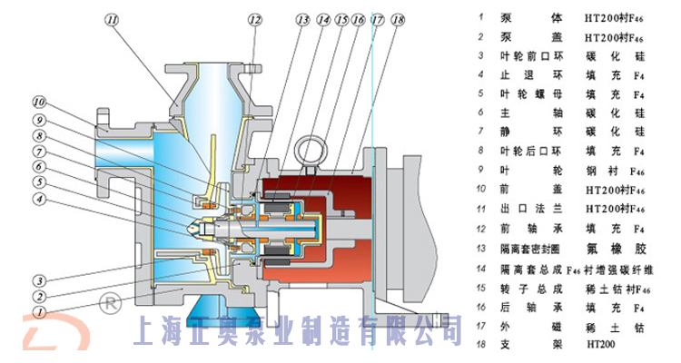 ZMD氟塑料自吸磁力泵其過(guò)流部件全部采用目前世界上耐腐蝕性能優(yōu)秀“塑料王”(氟塑料)制造,泵體采用金屬外殼內(nèi)襯聚全氟乙丙烯(F46),泵蓋、葉輪均用金屬嵌件外包氟塑料整體燒結(jié)壓制而成 ,隔離套采用特殊材料制造,具有高強(qiáng)度的力學(xué)性能,消除了普通磁力泵存在的磁渦流現(xiàn)象。泵第一次使用前灌液后,第二次及以后使用則無(wú)需灌液,直接開(kāi)機(jī)即可吸取輸送低于泵安裝位置以下的液體。自吸無(wú)泄漏的ZMD磁力泵是替代笨重液下泵進(jìn)口自吸泵的理想選擇用泵。
