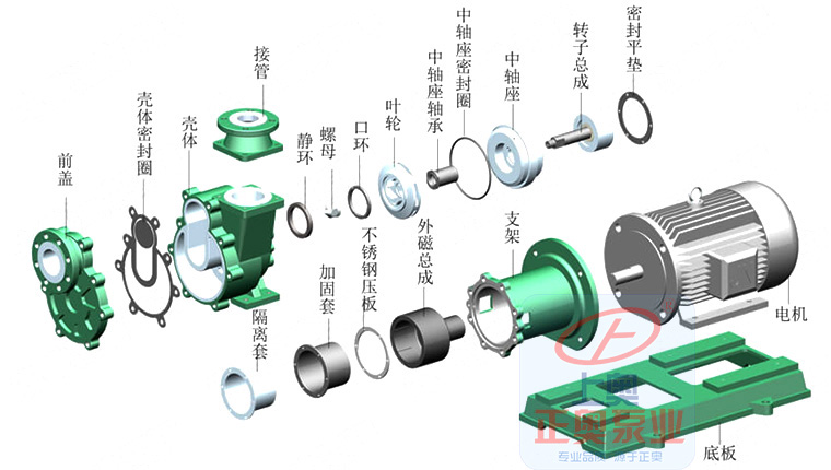 ZMD系列自吸式磁力泵,集合了磁力泵的所有優良特性,且優勢即可以自吸,一般自吸高度可達2-4米,充 分結合了自吸泵和磁力泵的所有優點,既具有自吸功能,又取消了軸封,利用磁力偶合間接傳動,完全消除了滴漏的現象。是輸送易燃、易爆、易揮發、強腐蝕、強 滲透性高危化學介質理想的選擇。根據所輸送介質的特性,如介質比重、腐蝕性等可選用不用材質的泵主軸材料,如輸送氫**酸和有機溶劑可選用無壓燒結碳化硅 主軸或99.99%氧化鋁陶瓷主軸。ZMD系列磁力驅動泵采用新材料制成的隔離套具有高強度的力學性能,消除了一般磁力泵具有的磁渦流現象。 ZMD系列磁力驅動泵采用獨特的后拉式結構,整機過流部分只有5個部件總成組合而成,一人便可以很輕松地進行內部檢修和零件更換,無需拆卸管道,大大方便了日常的檢修和保養工作。