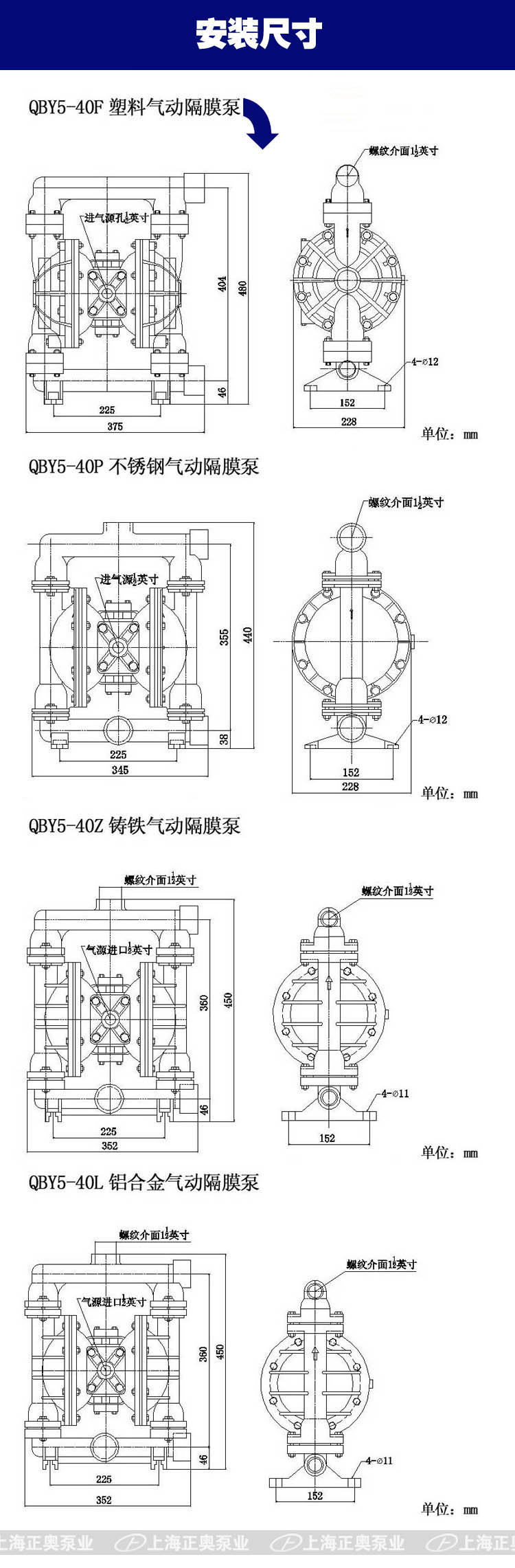 正奧公司生產(chǎn)的隔膜泵共有十二種規(guī)格。進出口尺寸分別為1/4”(10mm)、1/2”(15mm)、3/4”(20mm)、1”(25mm)、1.2”(32mm)1.5”(40mm)、2”(50mm)、2.5”(65mm)3”(80mm)、4”(100mm)流體部件材質(zhì)有:鋁合金、鑄鐵、工程塑料、不銹鋼、隔膜片根據(jù)不同膜片材質(zhì)分別有:丁晴橡膠、氯丁橡膠、聚乙烯、聚膠、聚醚橡膠、氟橡膠、氟塑料、特氟隆。以滿足不同液體介質(zhì)的需要。