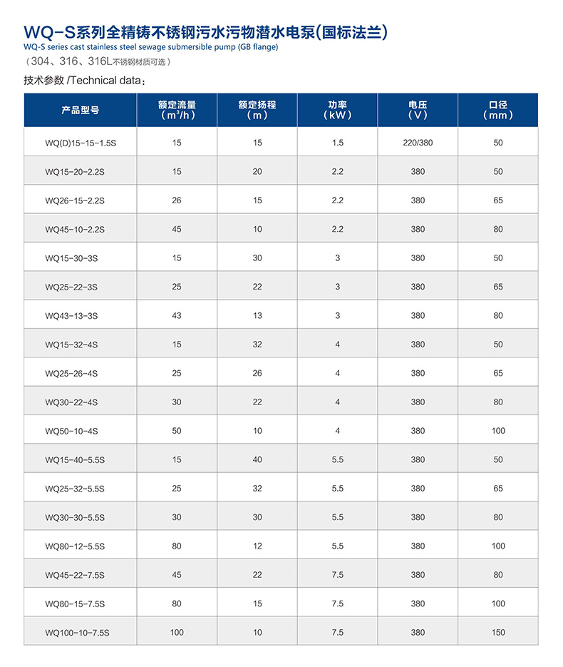 WQ-S全不銹鋼潛水泵