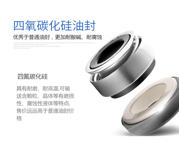 3、軸封采用機械密封或機械密封的組合,采用優質的硬質合金密封環,增強了密封的耐磨性,能有效地延長泵的使用壽命。